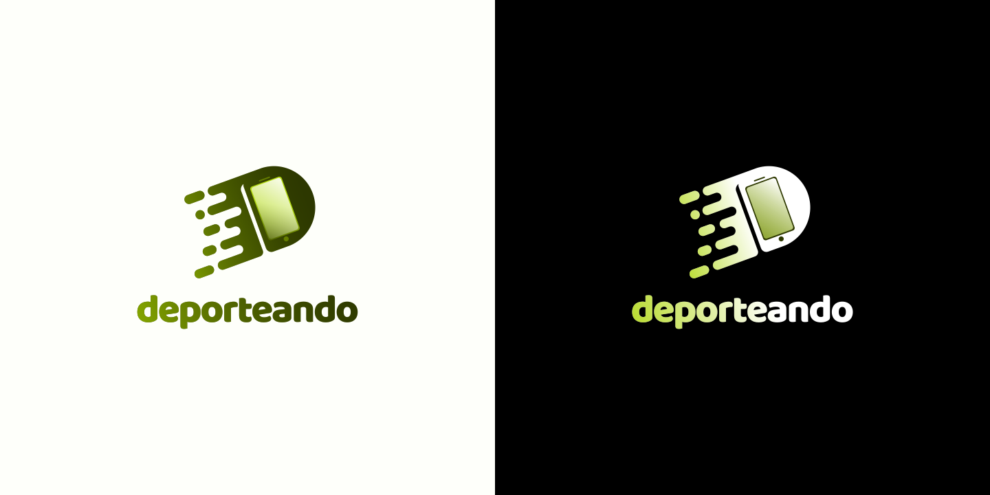 'Deporteando' es una aplicación social que conecta a personas interesadas en encontrar compañeros de deporte o un equipo. El logo representa la velocidad: no solo de manera visual con la estela rápida de una pelota, sino también reflejando lo ágil que es organizar un partido a través de la app. Todos estos elementos se integran en la silueta de la inicial de la marca.