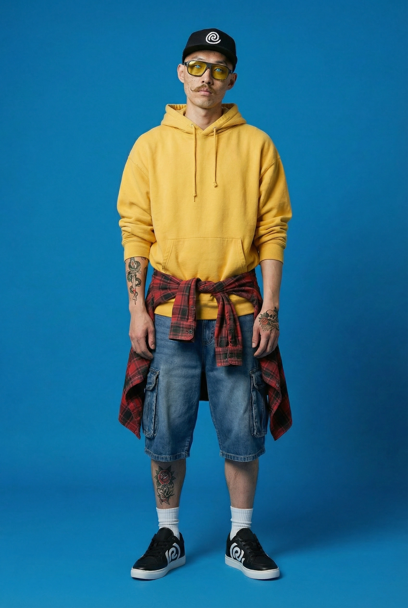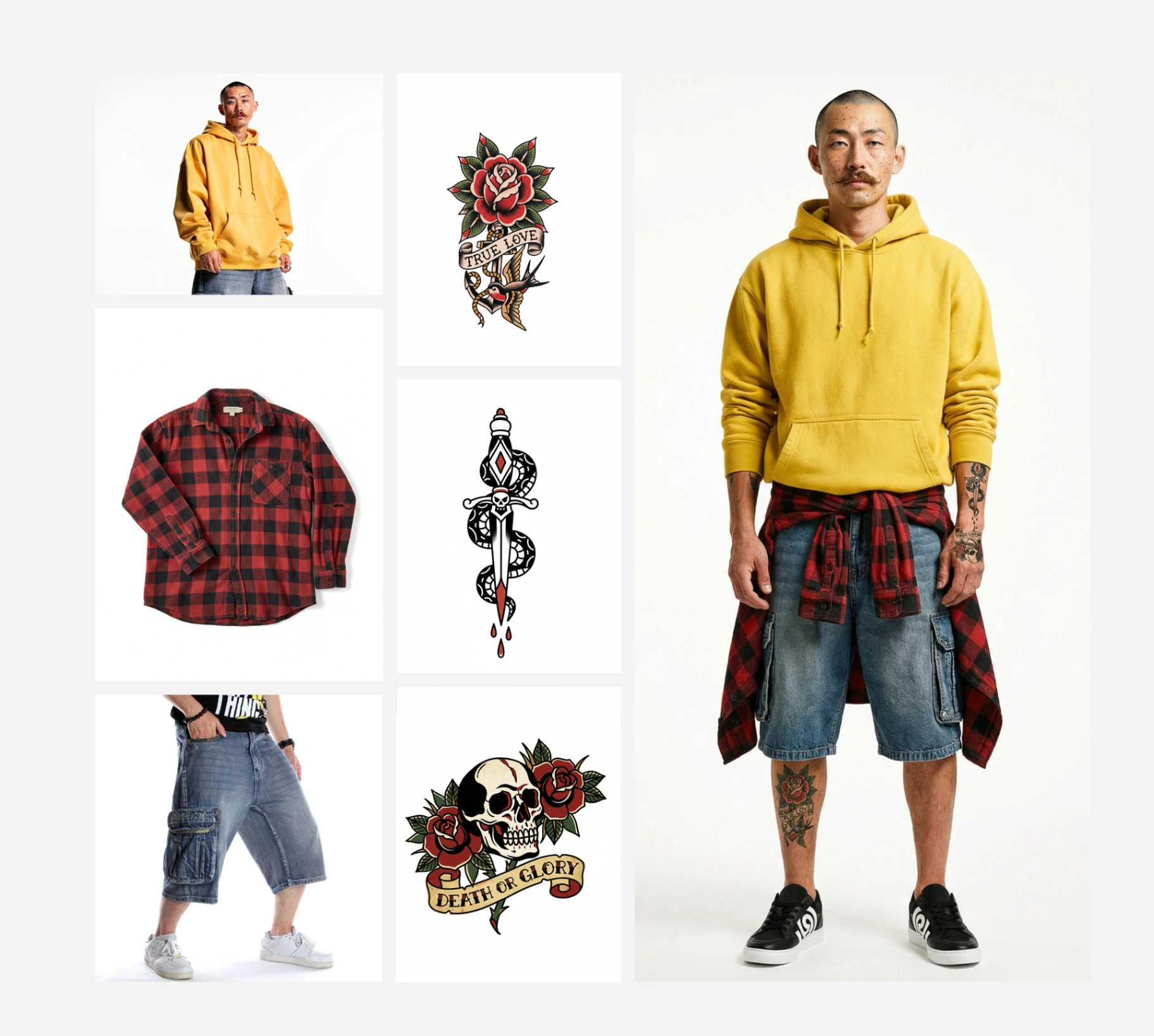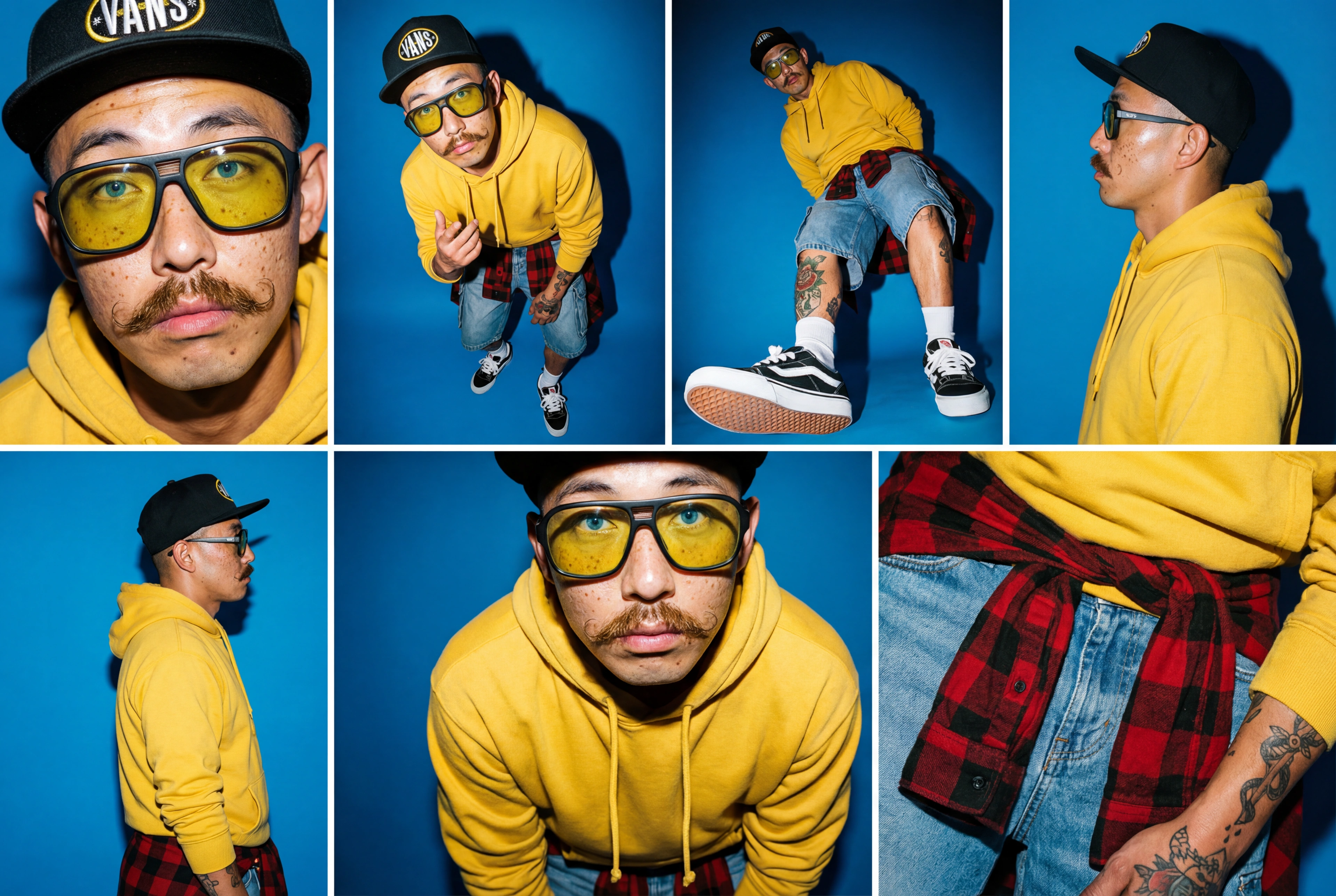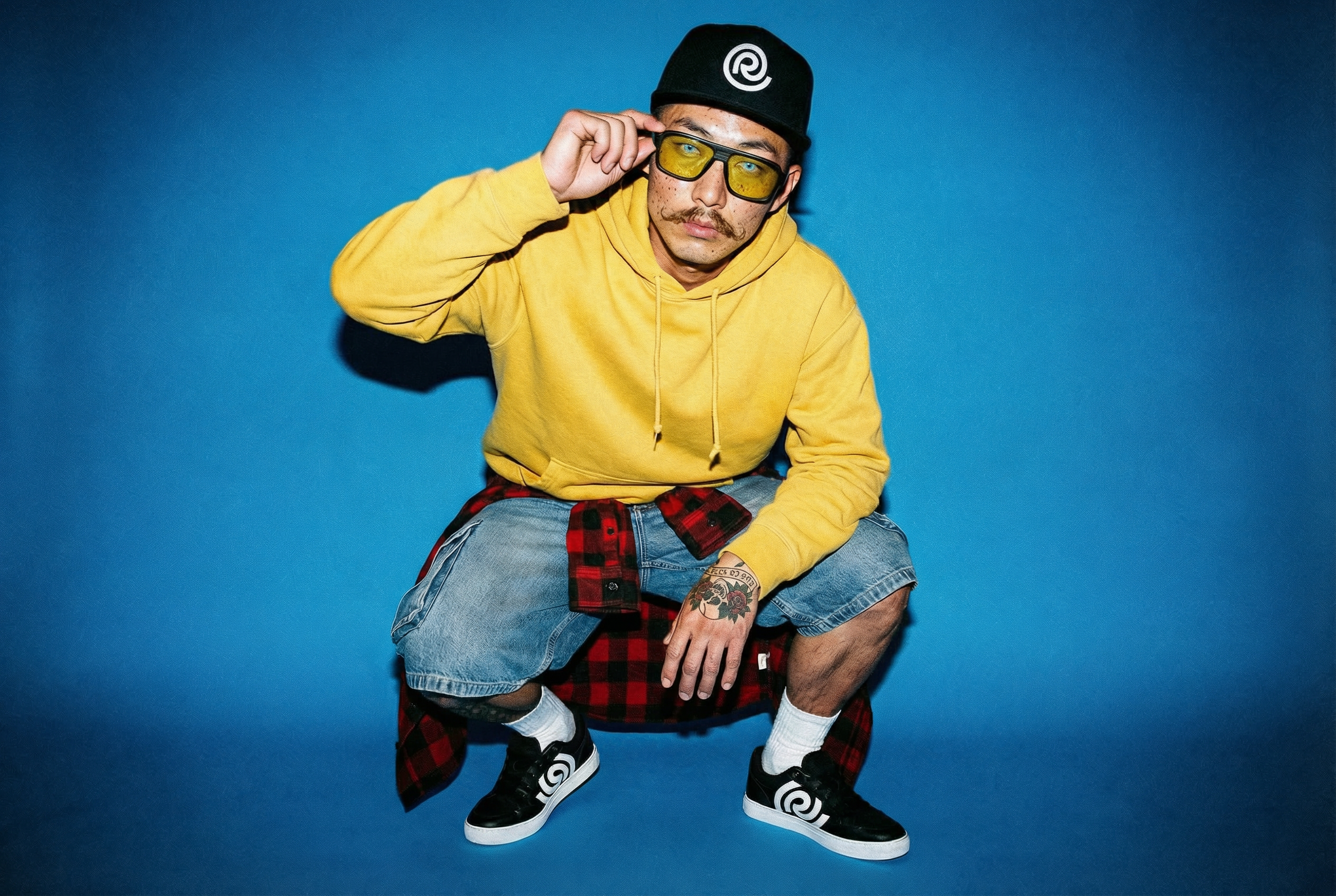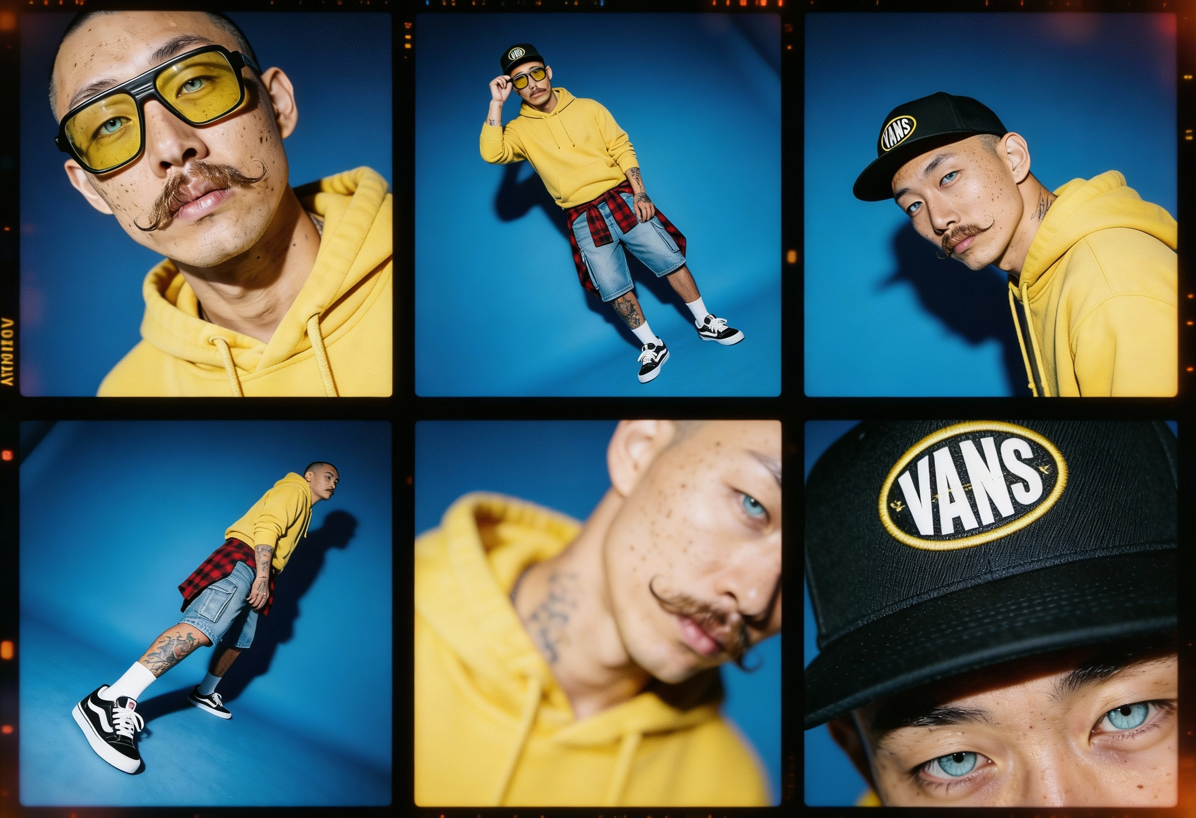 El verdadero reto técnico fue mantener la integridad de estos rasgos específicos a través de múltiples generaciones y escenarios. Para su campaña de debut, el entorno se completó con el diseño de producto: unas zapatillas personalizadas que rinden homenaje a las marcas más icónicas del movimiento skater.